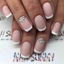 Тренды сезона. В тренде остается классический вариант френча – сочетание нюдовых цветов (бежевого, персикового, розового, молочного, жемчужного и других) в основе и белой окантовки.
