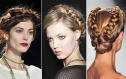 Модельеры в некоторых коллекциях представили очень интересные прически: на корнях моделей был сделан сильный начес, а все волосы собраны на бок в тугие косы, такой вариант смотрится очень современно и свежо, при этом не требуется много усилий, чтобы повторить эту прическу. Для длинных волос отлично подойдет перевернутая коса или «Греческая».