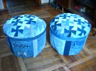- На ткани делается соответствующая выкройка с учетом замеров пуфика, детали вырезаются из ткани и сшиваются между собой, оставляя отверстие для молнии. Вшивается молния, и чехол для пуфика выворачивается на лицевую сторону. Чехлы можно менять, подбирая под нужный интерьер.