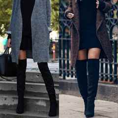 | Сапоги-трубы | Высокие сапоги, облегающие ногу, различные материалы (замша, кожа), разнообразная высота каблука | Высокие замшевые сапоги-трубы коричневого цвета на небольшом устойчивом каблуке. |