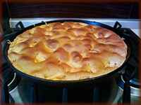 - Сверху равномерно выливаем тесто и, не перетряхивая, очень аккуратно убираем в духовку (170С) до готовности.